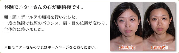 【小顔形成 60:14000円(税込)】 ※初回14000円 2回目以降は11200円 「頭蓋骨→顔面骨→デコルテ」と施術していく当店人気のコースです。 頭蓋骨の美容効果の中でも小顔効果やリフトアップ効果を高めたい方に。また、お顔の左右のバランスが気になる方や結婚式・記念日・パーティー前にもおすすめです。 頭蓋骨のケアをした後に、小顔効果の高いリンパトレナージュとリフトアップもおこないます。表情筋だけを引き上げるのではなく、頭蓋骨から引き上げるという新感覚をご体感ください。
