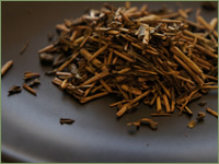 | 当社のほうじ茶は、1番茶の葉が大きくなった茶葉を使用しており、香りを引き立てるために全国でもあまりない二度焙煎の技法を使っています。最初の低温焙煎で茶葉の水分と成分を引き出し、二度目の高温焙煎で一気にほうじ茶の命の「香り」とほのかな「甘み」を引き出します。 |