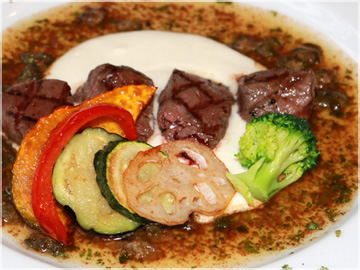 実は30年前に私自身が大病をして、それがきっかけで“食の安全”について考えるようになりました。当時はそんなことを言っている人は誰もいなかったのですが、安全に食べられるものを追求した時に出会ったのがダチョウでした。脂肪分が少なく高タンパク、味に癖がなく、まるで牛肉のようです。肉自体が淡白な分、おいしいソースが味の決め手になります。ぜひ召し上がってみてください。