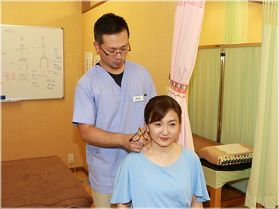 『SCTカイロプラクティック』というダメージの少ないソフトな矯正施術が中心です。これは、骨をボキボキと鳴らすような刺激の強いものではなく、体全体をみて骨格の歪みを矯正していくものです。体の歪みは自律神経やホルモン、血圧などにも影響しますので、この施術によって体の内側の疾患についても対応できます。それに鍼を併用することにより痛みを和らげていきます。骨格のバランスを整えていくと、不思議といろんな痛みがとれていきますよ。